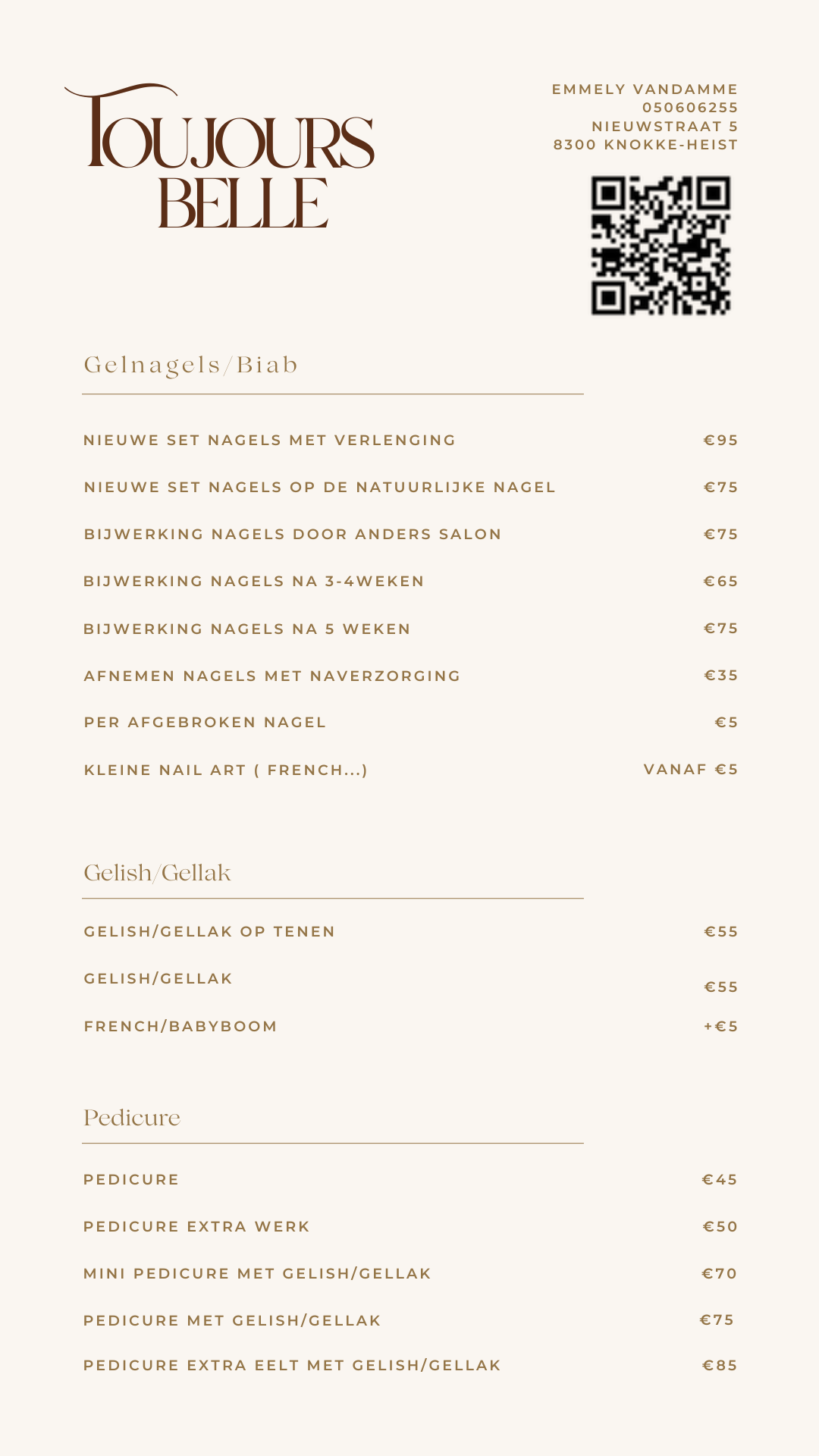 hoi hoi! Ik ben Emmely Vandamme. Ik ben afgestudeerd als schoonheidsspecialiste en schoolde mij direct na mijn studies bij als nagelstyliste. Snel werd ik gebeten door de nagelmicrobe. Daarom ga ik nog jaarlijks op opleiding , je kan nooit genoeg leren. Je kan bij mij terecht voor mooie kunstnagels en allerlei behandelingen op maat. Maak vandaag nog jouw afspraak. tot binnenkort! liefs
